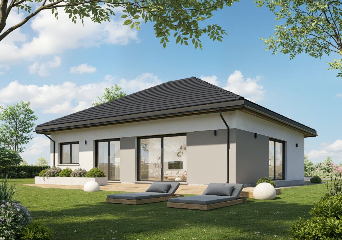Oferta dodana za pomocą Multiportalu BeBrokerNowoczesny parterowy dom 108,64 m² w stanie deweloperskim, na działce ponad 1000 m², w Bartoszówce przy ul. Pałacowej.